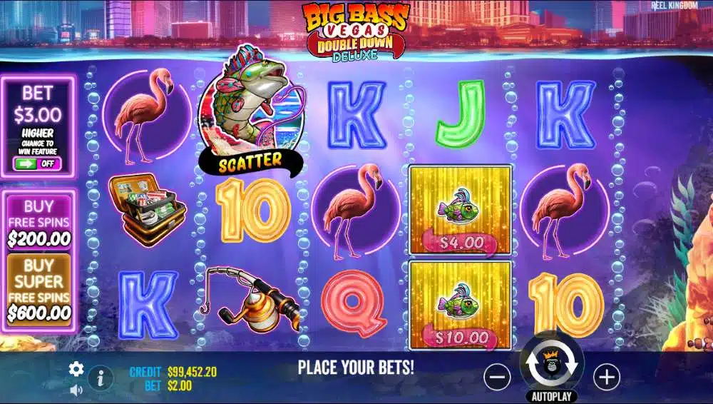 Essential highlights of the Big Bass Vegas Double Down Deluxe Slot include:
