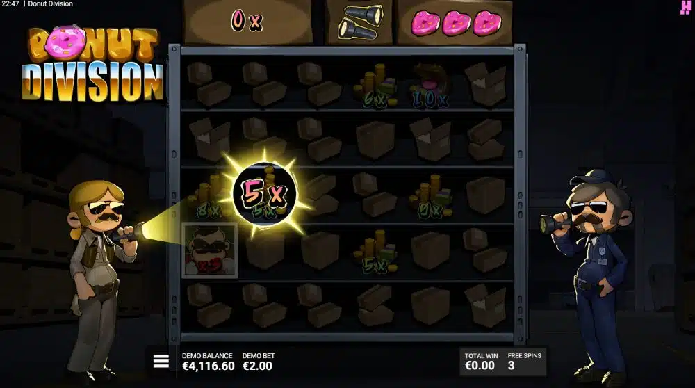 These features make Donut Division a dynamic and rewarding slot, combining strategic play with high-win possibilities.