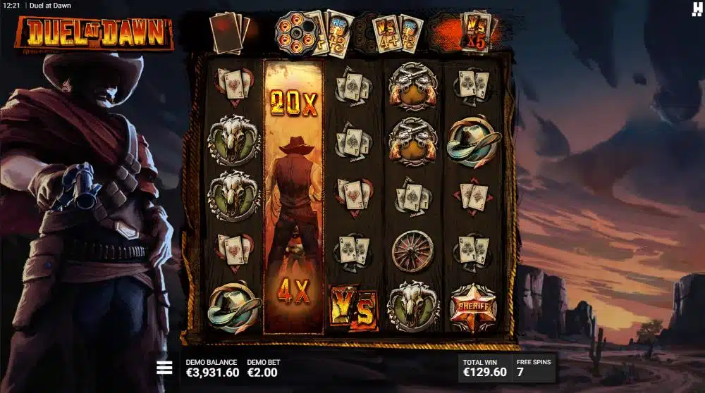 - Dusk ’Til Dawn: Triggered by four FS scatters, this round awards spins that unlock up to four DuelSpins. Outlaw symbols introduce six wilds per spin, while expanding DuelReels™ progressively increase VS symbols, stacking multipliers for potential explosive payouts.