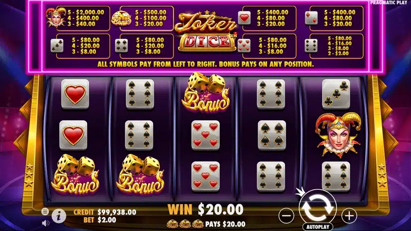 Together, these characteristics position Joker’s Jewels Dice as a perfect choice for players who appreciate fast, uncomplicated slots with nostalgic appeal and solid winning chances.
