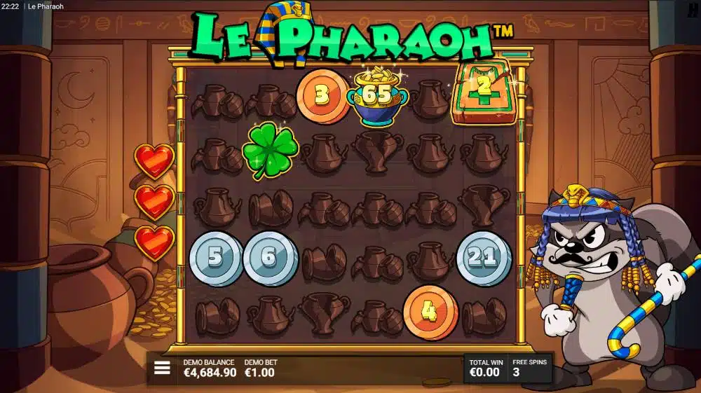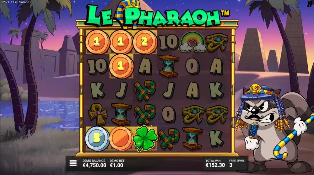 Le Pharaoh is a captivating slot game that brings the Egyptian theme to life with a unique and playful twist. Guided by Smokey, the raccoon turned pharaoh, players embark on a vivid journey through ancient sands in a way that feels both lighthearted and immersive. Playing Le Pharaoh online offers standout mechanics like Sticky Re-Drops, which keep winning symbols locked in place for additional chances to win, and the Golden Riches feature, which adds exciting layers of reward potential.