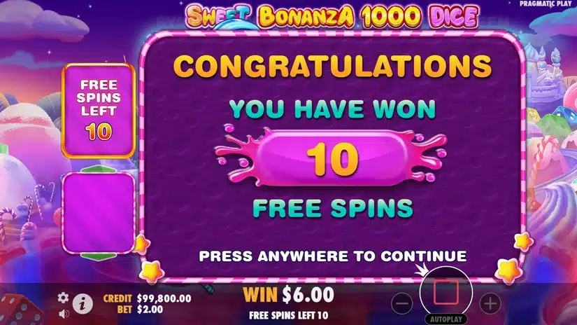For players who prefer instant excitement, the Bonus Buy feature offers direct entry into the Free Spins round for 100 times the stake. This makes Sweet Bonanza 1000 Dice a fast-paced, high-volatility slot with strong winning potential.