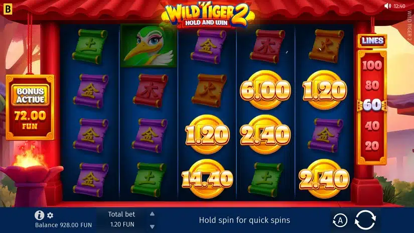 The Expanding Wilds in Wild Tiger 2 are tiger symbols that can grow to cover an entire reel when they appear. This feature enhances your potential to form multiple winning lines on a single spin. During Free Spins, Expanding Wilds can be even more impactful, as they often combine with other multipliers to dramatically increase payouts, adding both excitement and strategy to the game.